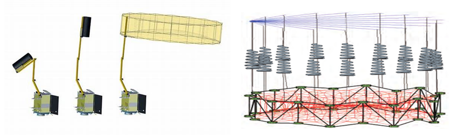 太阳能帆板、可展开天线等大型航天结构展开过程的力学参数测量对航天器安全设计与强度校核至关重要,但是模拟太空失重条件所需的复杂实验条件和高昂的实验成本使高校实验室望而却步。项目通过三维仿真技术,再现大型环形索网天线在轨工作真实场景,还原天线在微重力环境下从爆炸解锁到结构展开到锁定为工作面型的全部动力学过程。