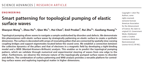 朱睿教授联合美国密苏里大学黄国良教授在弹性表面波拓扑输运研究方面取得新进展。相关成果以“Smart patterning for topological pumping of elastic surface waves”为题,在Science Advances上发表[Sci adv (2023) 9, eadh4310]。东京热