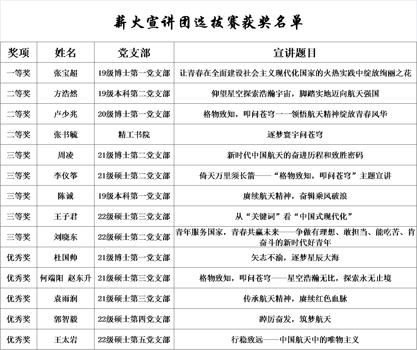 评审小组评审,共选拔出14份优秀讲稿进入现场宣讲阶段。14名选手依次登台宣讲,聚焦于中国航天发展、航天精神谱系、新时代青年担当、中国式现代化新征程等主题,讲理论、讲精神、讲成就、讲成长、讲体会、讲收获,宣讲内容详实、案例丰富,充分讲述了东京热