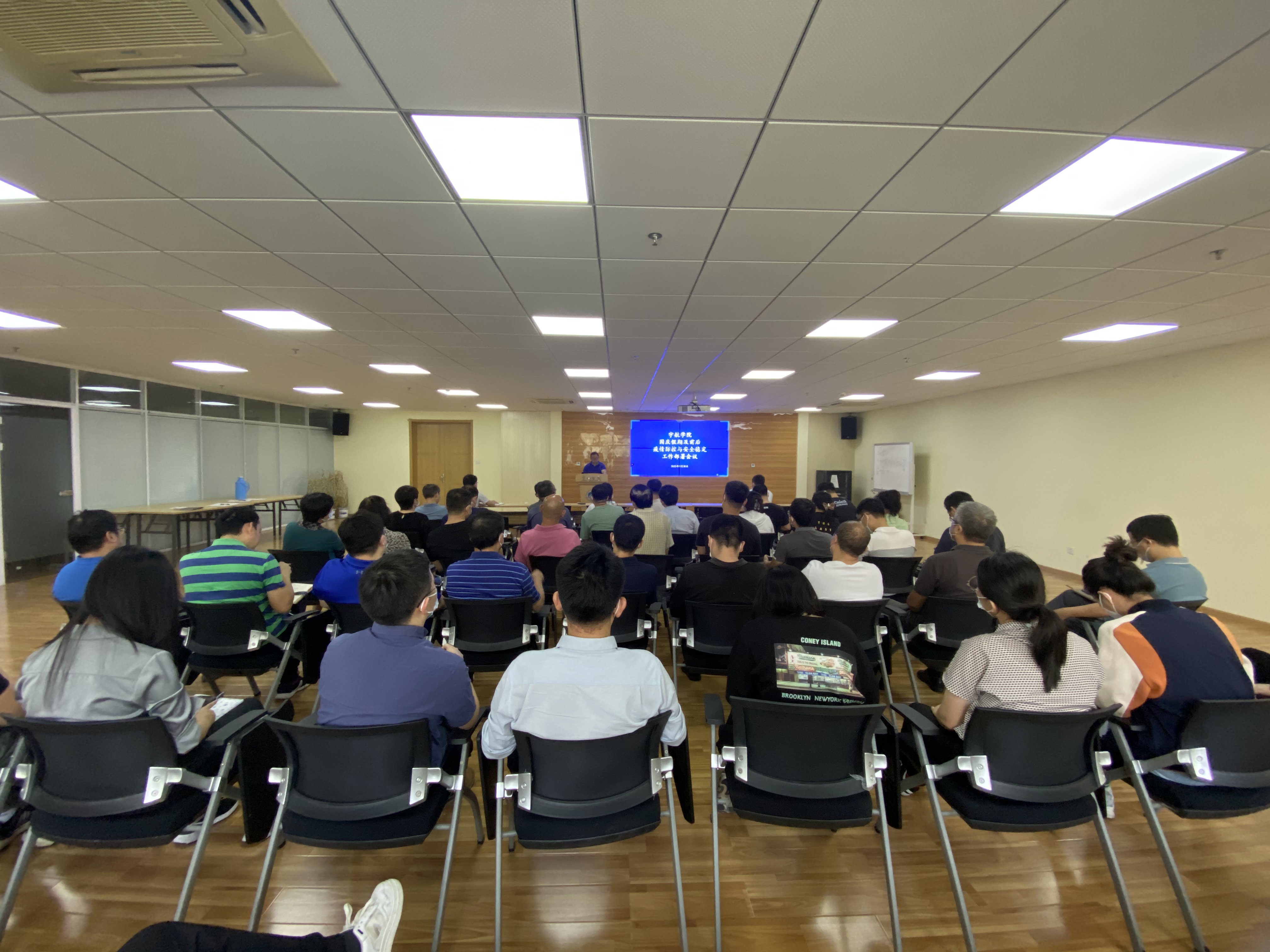 在310A会议室召开国庆假期及前后疫情防控与安全稳定工作部署会议,会议采取线上线下结合的方式,东京热