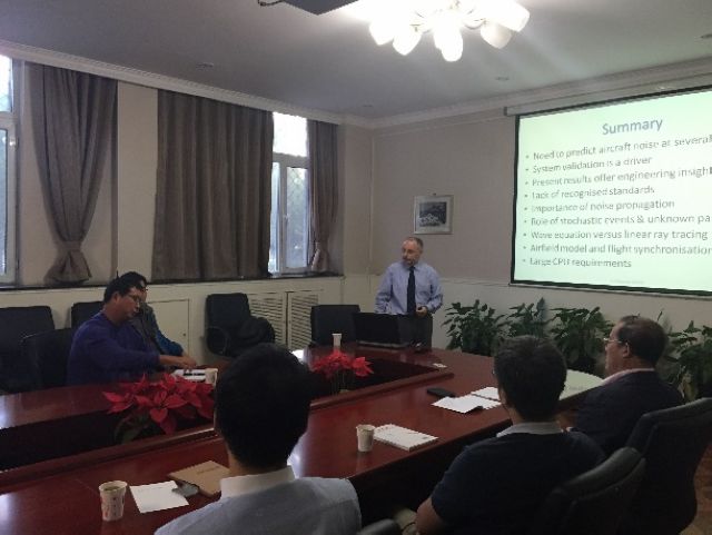 报告中,Filippone博士结合自己的研究成果和经验,主要针对民航飞机的噪声预测、传播及减少等问题进行了深入分析和讲解,并指出民航飞机噪声问题研究过程中出现的难点与亟待解决的问题。Filippone博士学识渊博、经验丰富,报告题材新颖、内容深入细致,使大家受益匪浅。报告结束后,老师和同学们就感兴趣的问题和Filippone博士进行了讨论和交流。
