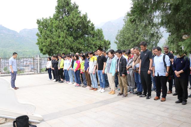 参观平西抗日纪念碑、百名抗日烈士碑林时,教师们驻足纪念碑前,悼念革命先烈,集体默哀,表达对革命先烈的敬仰和缅怀之情。随后,东京热