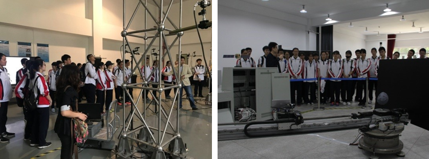 无人飞行器自主控制研究所、深空探测技术研究所及空间结构动力学与控制研究所实地参观交流。在空间结构动力学与控制研究所的交流活动中,同学们现场观看了大型可展开空间结构的展开试验,同时东京热