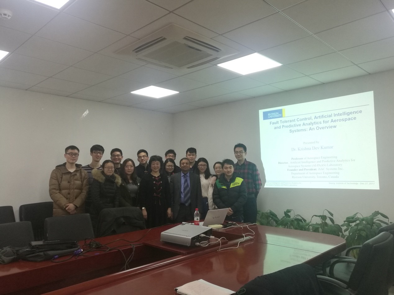 进行学术访问与交流,并于27日上午在宇航楼519会议室作题为“Fault Tolerant Control, Artificial Intelligence and Predictive Analytics for Aerospace Systems: An Overview”的学术交流报告。