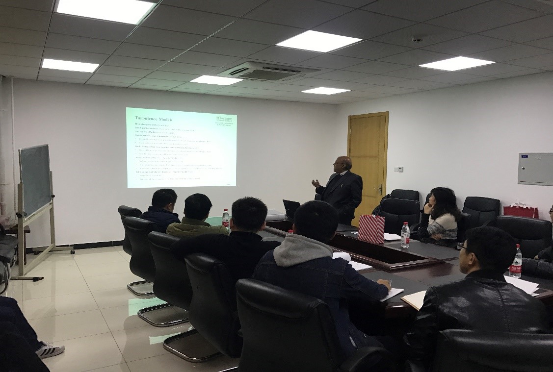 会议室作“新型单方程湍流模型在复杂湍流预测计算中的应用”学术交流报告,并与师生进行交流互动。
