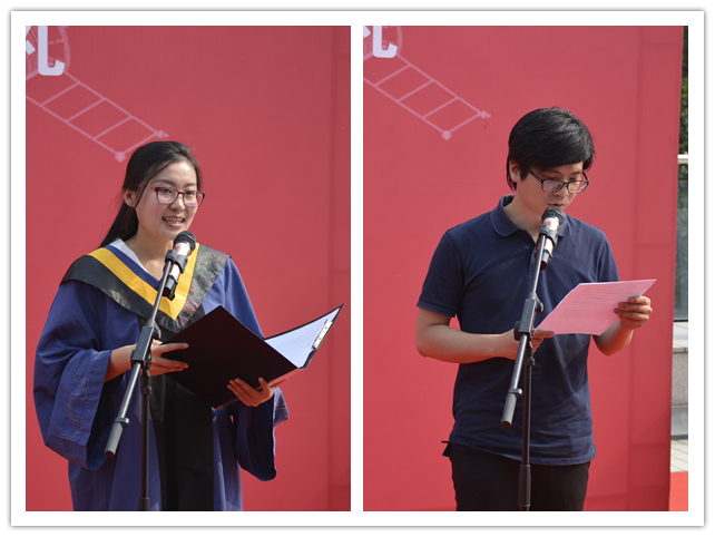 郭佳代表毕业生发言,她既是硕士毕业研究生,也曾是东京热