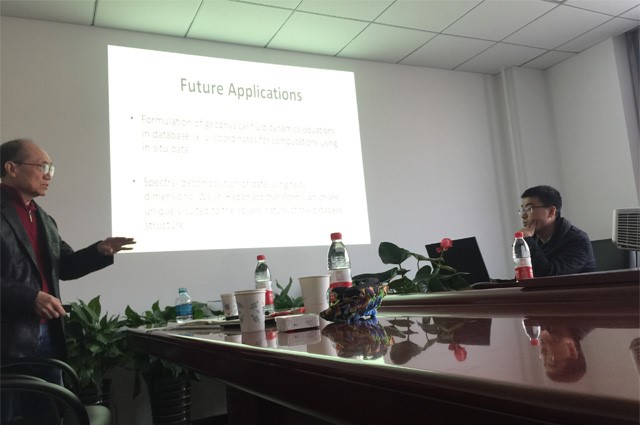 师生做了题为“QUADRILATERALIZED SPHERICAL CUBE (QLSC)”学术报告。学术交流活动由张景瑞教授主持。