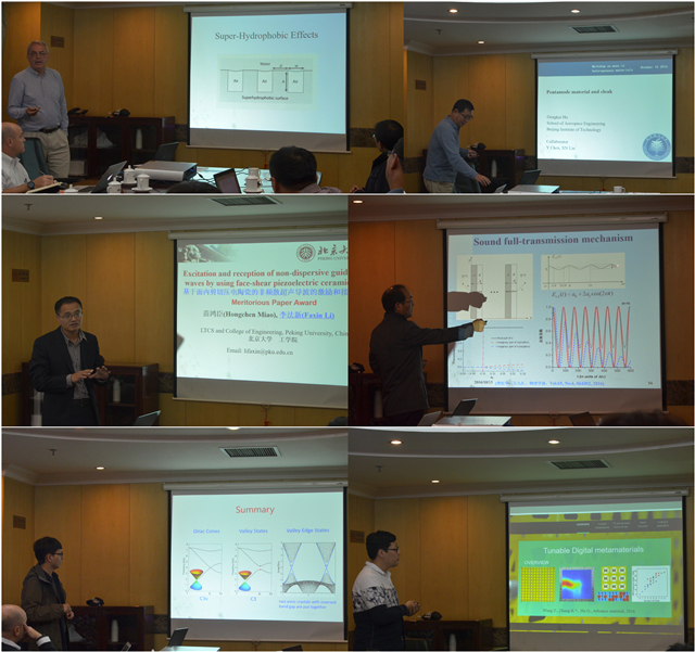 胡更开院长做了题为“Pentamode material and cloak”的学术报告,每个报告之后均进行了热烈讨论,激发了与会专家和研究生的思考与交流。