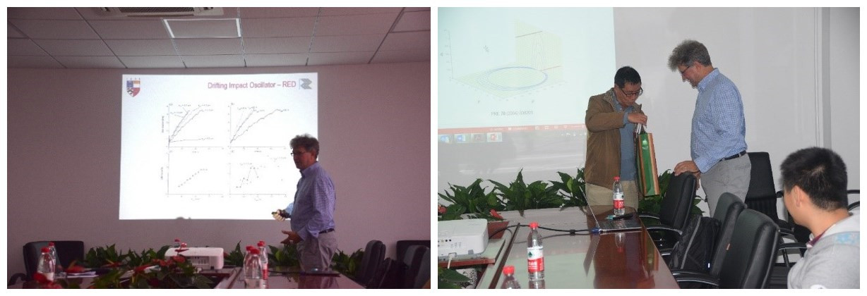 Marian Wiercigroch教授的报告学术内容丰富,讲述生动有趣。学术报告讨论环节,师生们与Wiercigroch教授就相关非线性动力学问题进行了深入的探讨与交流,拓宽了师生的学术视野。会后胡更开院长向Wiercigroch教授赠送了东京热