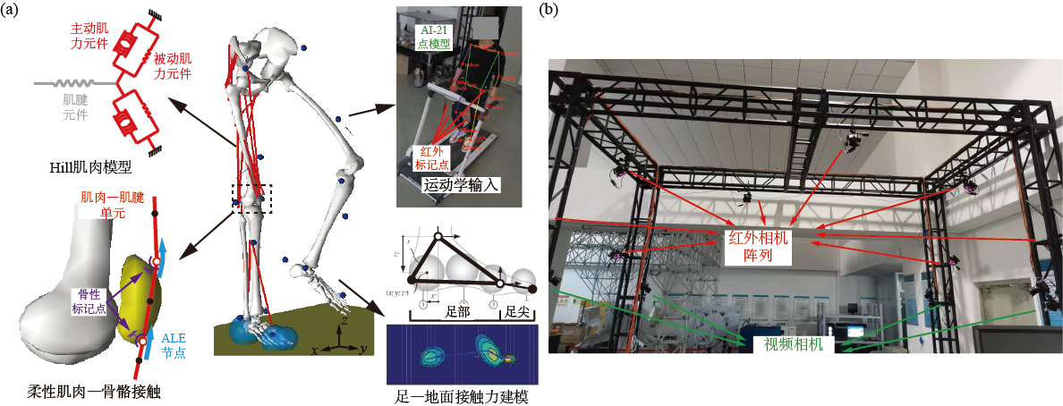 图4 人体肌骨系统多体动力学模拟与混合动作捕捉实验平台